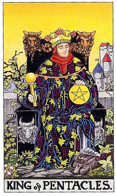 1. 펜타클 왕 (King of Pentacles) 그림 속 의미와 상징